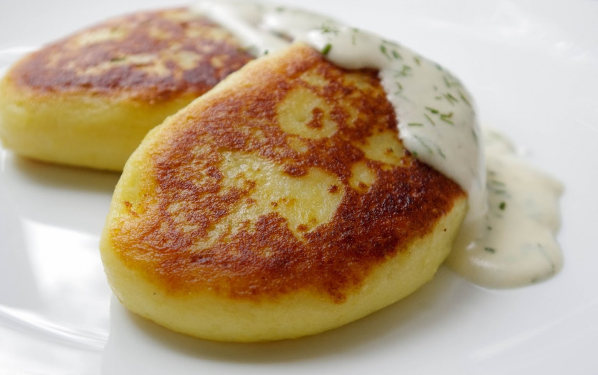 3. Į bulvių masę dėkite įdaro ir formuokite paplotėlius. Apkepkite iš abiejų pusių ant vidutinės ugnies, kol gražiai apskrus. Sudėkite į dubenį su dangčiu, kad sušustų.