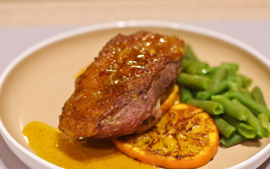 - Prie mėgstamo garnyro patiekite apelsino griežinėlius, keptą antieną ir užpilkite padažo.