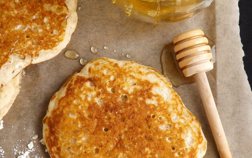 Patarimai, pastebėjimai. Avižinius dribsnius malkite tiek, kad būtų panašūs į rupios konsistencijos miltus. Tešlą į keptuvę dėjau 60 ml matavimo puodeliu. Iš šio kiekio gaunasi 8 blynai.