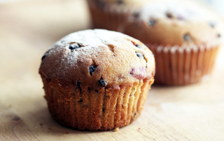 2. Įkaitinti orkaitę iki 180 laipsnių temperatūros. Įmaišius visus miltus, įdėti romo esencijos, aviečių likerio, tada šokolado traškučių ir aviečių. Išmaišyti. Supilti tešlą šaukštu į keksiukų krepšelius įstatytus į keksiukų skardą. Kepti įkaitintoje orkaitėje apie 40 minučių. Išimti ir leisti atvėsti. Galima pabarstyti cukraus pudra.