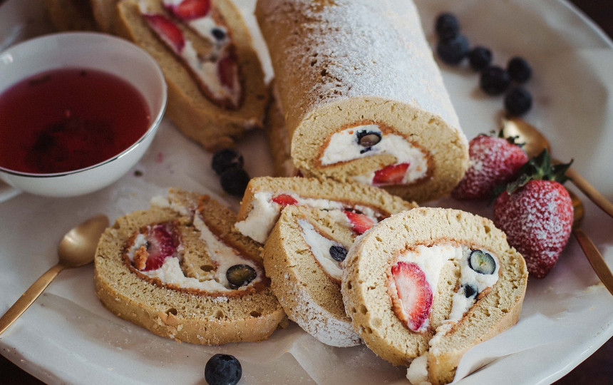 Iškeptą lakštą su popieriumi perkelkite ant stalo, užklokite drobele ir suvyniokite lyg vyniotinį. Taip suvyniotą padėkite siūle žemyn ir palikite atvėsti. Tada atsargiai išvyniokite, nuimkite drobelę ir popierių. Nesistenkite lakšto ištiesinti.