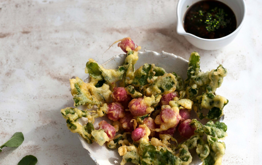 Nedideliame puode įkaitinkite aliejų, įmeskite vieną čiobrelio šakelę. Ridikėlius mirkykite tešloje, atsargiai dėkite po vieną į įkaitintą aliejų ir po maždaug1–1,5 min. kiaurasamčiu išgriebkite ant popierinio rankšluosčio – tešla turi būti išsipūtusi, traški ir rusva. Čiobrelio šakelę aliejuje retkarčiais pakeiskite nauja.