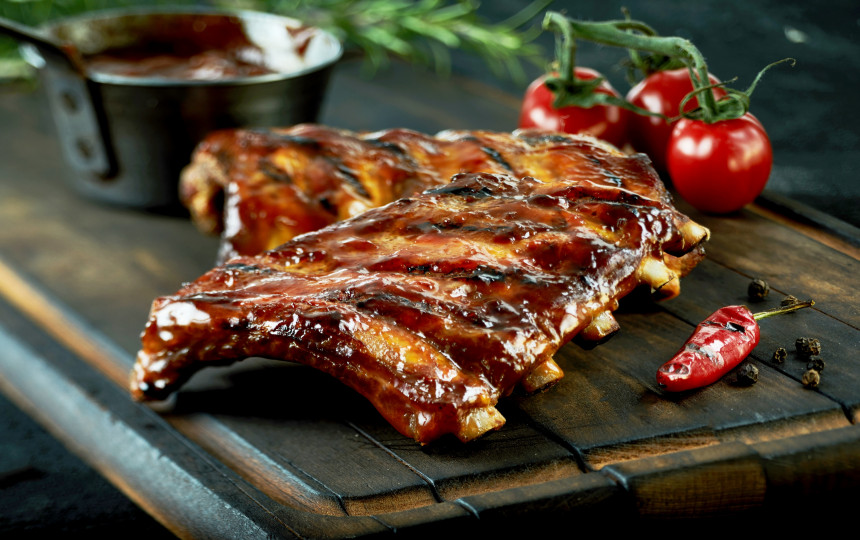 Reikės: 2 kg kiaulienos šonkauliukų, 2 šaukštų pomidorų pastos arba kečupo, 1 svogūno, 3 skiltelių česnakų, 1 šaukšto aliejaus, druskos, maltų juodųjų pipirų, aitriosios paprikos miltelių, kmynų pagal skonį, 1 šaukštelio cukraus, 1 šaukštelio garstyčių.